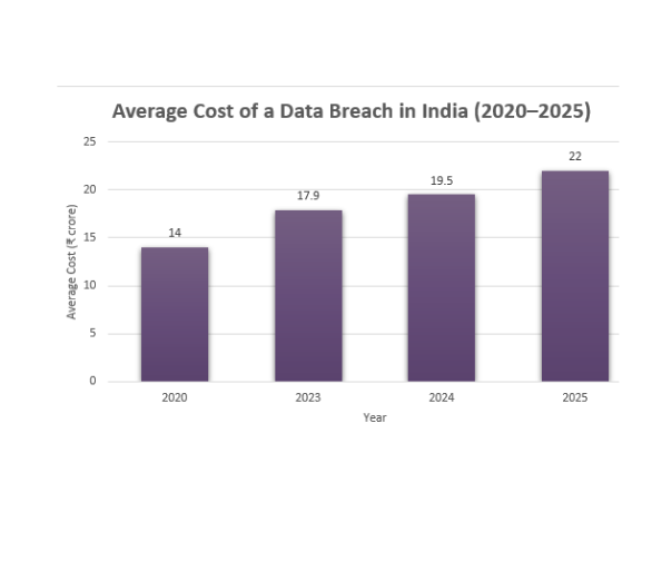 The financial impact of data breaches in India has climbed to its highest level ever — ₹22 crore in 2025, a 13% rise over last year. The increase reflects larger data volumes, stricter penalties under the DPDPA, and the growing sophistication of cyberattacks.